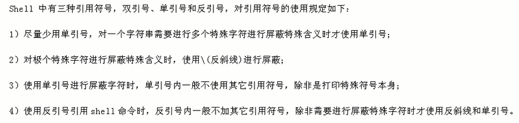统一、全部大写或者驼峰命名引用时: ${APACHE_ERR_NUM} 或"${APACHE_ERR_NUM}" 函数命名使用单词首字母大写,如CreateFile 。 或驼峰命名 createFile建议函数定义时在函数名前加上 function保留字,如:function testA(){ echo "test aaaaa"}testA()