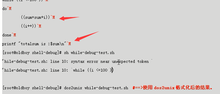 从windows编辑的脚本到linux下的格式可能会出现格式问题,可用cat -A filename.txt来查看情况。